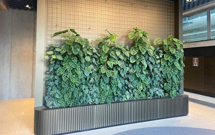 - Die Technik im Hintergrund, das sogenannte Plant Care System, wird in jedem Fall benötigt. Dies versorgt die Wand mit Nährstoffen und Wasser. Die Grösse der Wand ist dabei nicht entscheidend. Grundsätzlich gilt aber, je mehr Quadratmeter umso geringer ist der Preis pro Quadratmeter