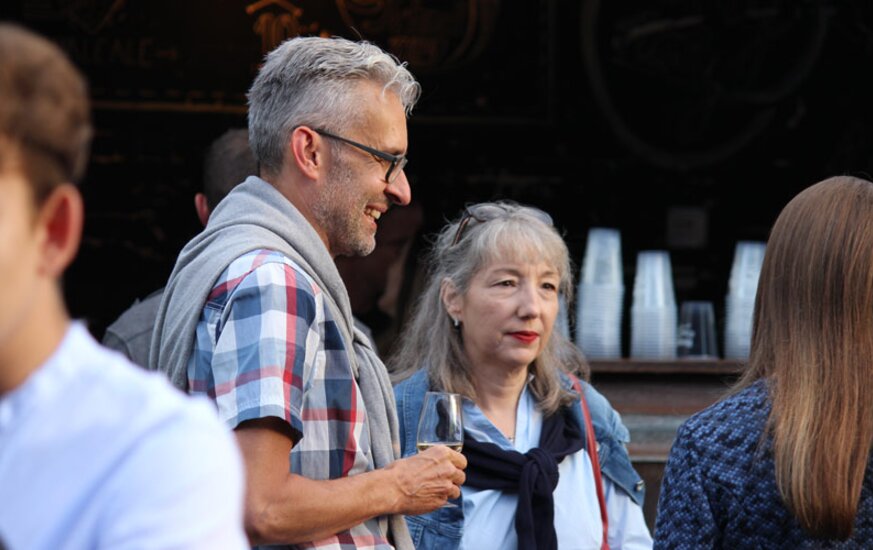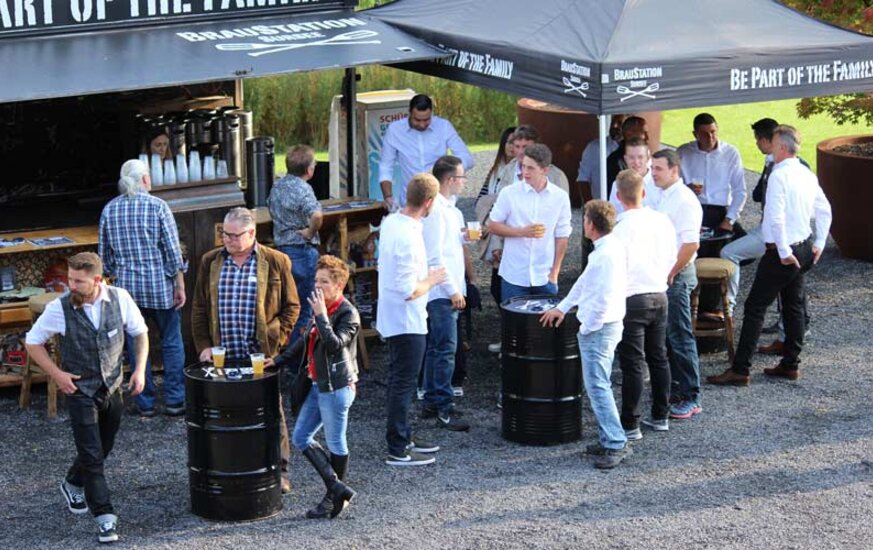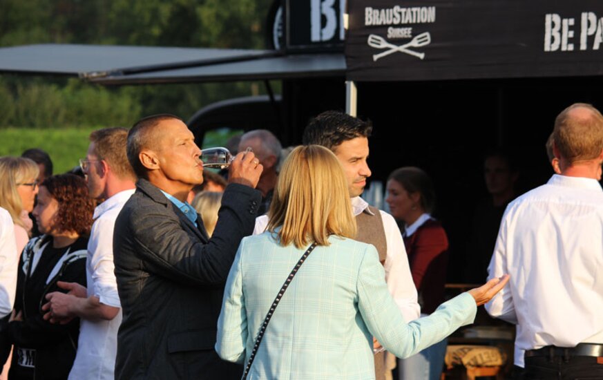 Die feinen Gerüche der drei Garküchen des tuk tuk Caterings luden ein, sich im Garten zu verpflegen. Zum Dessert erfüllte der Crêpes-Wagen alle Wünsche der Gäste. Den geschmackvollen Kaffee dazu servierte Caros Espresso Bar. Angeregte Gespräche gab es in der Lounge mit feinem Whisky und edlen Cigarren.