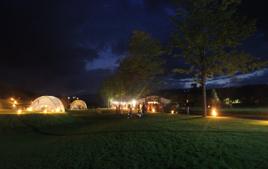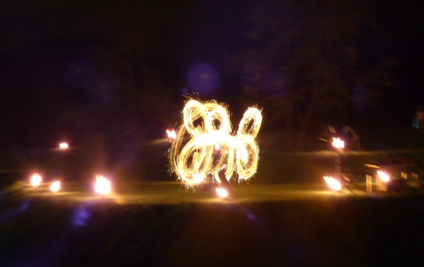 Im grossen Zelt herrschte Konzertfeeling. Es konnte mit frischem Bier von der Braustation zu den Rhythmen der irisch funk rock Band Rockets getanzt werden. Christian Ziegler zauberte eine mystische Feuershow mitten im Gartenpark.