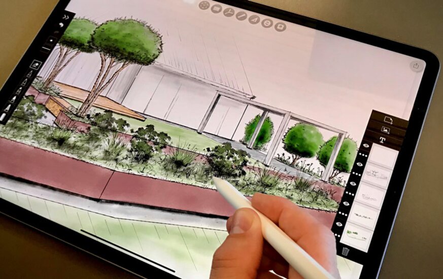Um Ideen aufs Papier zu bringen, ist ein Grundriss nötig. Falls noch kein Plan des Gartens existiert, können wir bei Hodel & Partner mithilfe eines Tachymeters oder eines anderen Hilfsmittel eine Geländeaufnahme erstellen. Mit den gewonnenen Daten wird ein digitaler Grundriss erarbeitet, auf dem der künftige Garten freihändig entwickelt und skizziert wird. Um sicherzugehen, dass die Vision die Kundenbedürfnisse erfüllt und das Potenzial des Gartens ausschöpft, werden die einzelnen Prozessschritte laufend mit dem Team reflektiert. Durch das Teamwork stellen wir sicher, der Gartenbesitzerin oder dem Gartenbesitzer die beste Lösung zu präsentieren.
