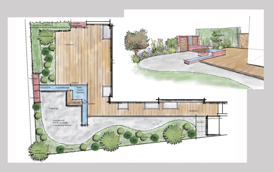 In einem weiteren Schritt kann der Plan in der Regel nochmals überarbeitet und feinjustiert werden. Anpassungen können zum Beispiel die Pflanzenwahl oder die Materialisierung betreffen.