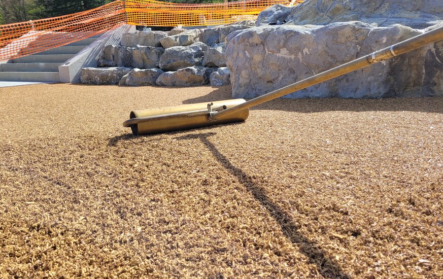 In Kürze öffnet das Waldbad Zimmeregg pünktlich zur Sommersaison seine Tore. Die idyllisch im Wald gelegene Badi erstrahlt nach der rundum Erneuerung in neuem Glanz. Für Familien mit Kindern bietet das Planschbecken und vor allem der grosszügige und abenteuerliche Spielplatz ein besonderes Vergnügen. Damit der Spielplausch nicht ein unglückliches Ende nimmt sorgt der fugenlose Belag Gemfloor Mulch für eine weiche Landung.