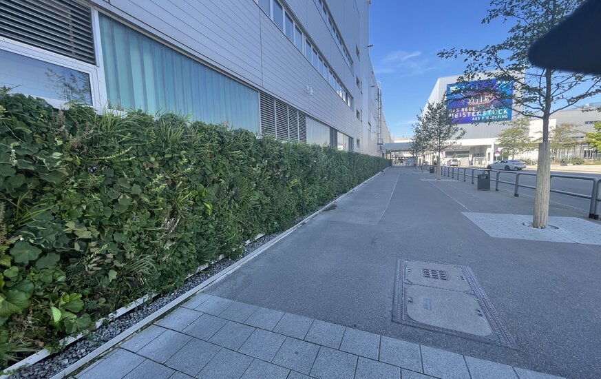 Obwohl sich die Luftqualität seit Mitte der 1980er Jahre stetig verbessert, wird der Grenzwert für Ozon in vielen Teilen der Schweiz überschritten. Weiter haben wir starke Belastungen der Luft durch das CO2 welches zum Beispiel durch den Strassenverkehr verursacht wird. Die wandgebundene Begrünung ist hier eine sehr effektive Methode um die Luftqualität positiv beeinflussen zu können. Die Pflanzen einer Grünfassade filtern Feinstaub aus der Luft und wandeln CO2 in Sauerstoff um.