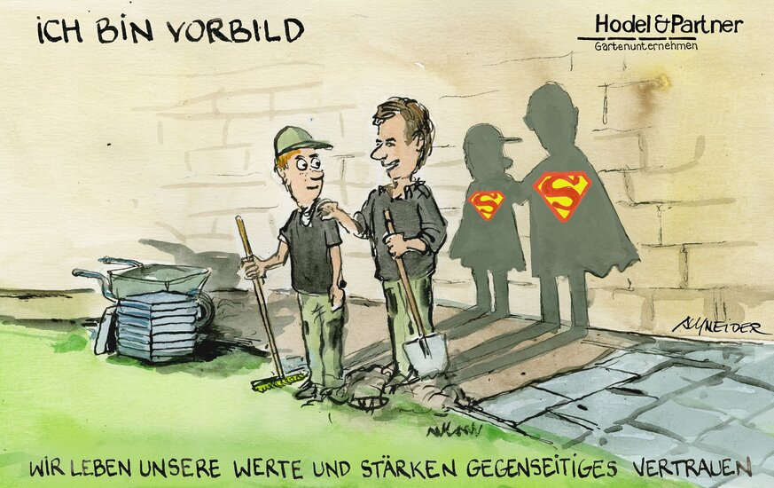 Damit die Führungsgrundsätze von den Kollegen nachhaltig gelebt werden, wurden eigens für Hodel & Partner Plakate erstellt. Diese werden bei uns im Werkhof aufgehängt und sollen so einen tägliche Erinnerung an unsere sehr wichtigen Grundsätze sein.