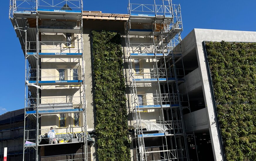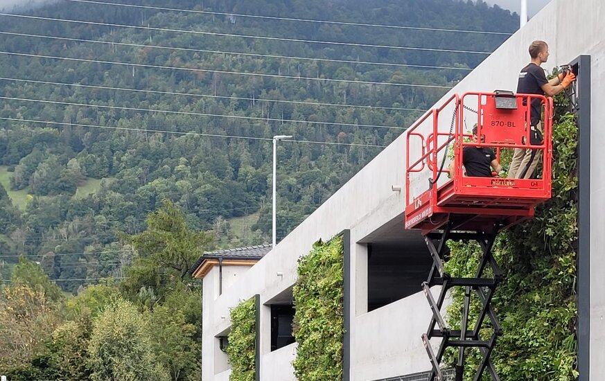 Für den Fashion Outlet durften wir elf grosszügige Greenwalls bauen. Die Grünflächen schaffen einen schönen Kontrast zum Beton und sorgen für wertvolle Grünflächen. Im Frühling erscheint die Greenwall aufgrund der zahlreichen Blüten in einem farbenfrohen Bild.