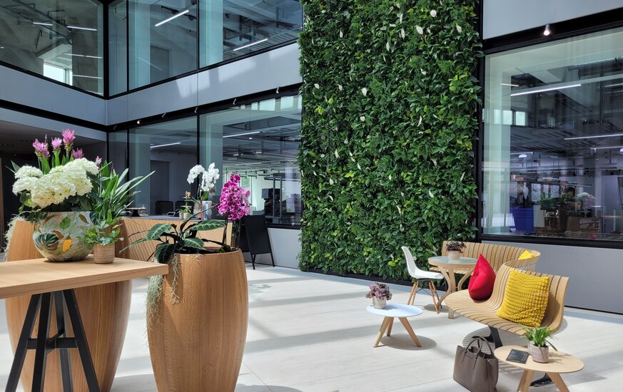 Am 22. Juni 2024 wurde der LEED-zertifizierte Neubau der Thermoplan AG in Weggis offiziell eingeweiht. Ein besonderes Highlight ist das stilvoll gestaltete Atrium mit dem Café unique, das den Mitarbeitenden und Gästen zur Verfügung steht. Direkt neben dem Café unique befindet sich die von uns geplante und realisierte 11 Meter hohe Indoor Greenwall. Die Pflanzenwand besticht durch eine schlichte und elegante Pflanzenkomposition. Trotz ihrer Grösse verleiht sie dem Raum eine ruhige Atmosphäre, ohne dominant zu wirken.