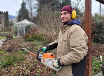 Jonas ist gelernter Landschaftsgärtner EFZ und im Bereich Grünanlagen tätig. Er ist ein teamfähiger Allrounder. Die körperliche Arbeit im Freien macht ihm Freude. Er schätzt an seiner Arbeit, dass die Ergebnisse sofort sichtbar sind und es eine sehr abwechslungsreiche Tätigkeit ist. Seine Freizeit verbringt er gerne mit der Familie. Sein Hobby ist das Schnitzen.